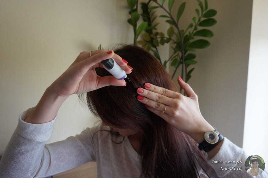 - препарат необходимо наносить на проборы волос, выполняя зигзагообразные движения;