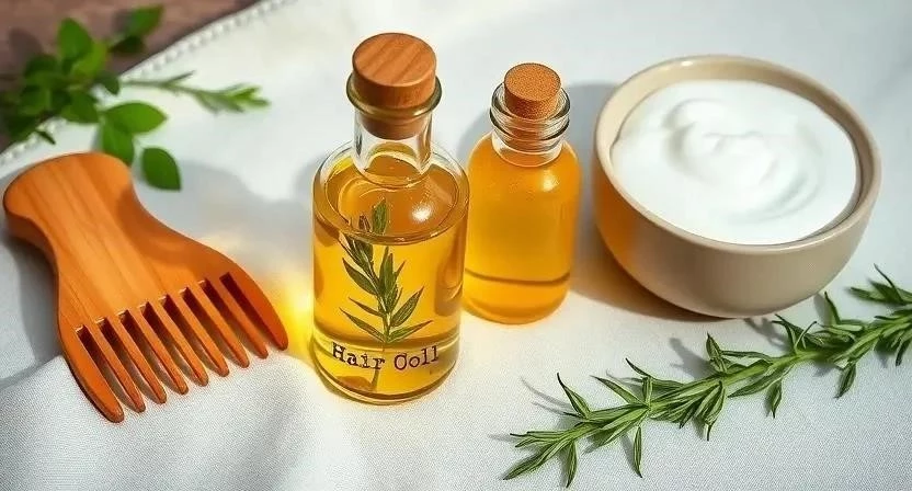 - Маска с маслами: Смешайте 1 столовую ложку оливкового масла, 1 столовую ложку кокосового масла и несколько капель эфирного масла лаванды. Нанесите на волосы и кожу головы, оставьте на 30 минут, затем смойте.