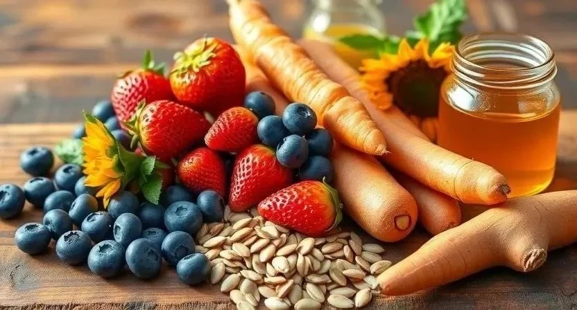 Ответ: Яйца, рыба, мясо, орехи, семена, фрукты и овощи, богатые витаминами и минералами.
