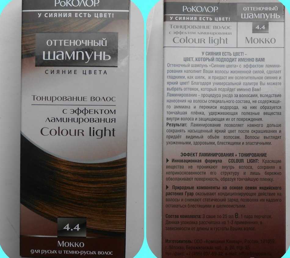 шампунь-тонер Роколор №4.4. Это предложение обладает видимым преимуществом: не окрашивает кожу головы, не вызывает зуда и ощущения жжения. Дарит небывалый блеск и сияние, однако вымывается уже после 4–5 мытья.