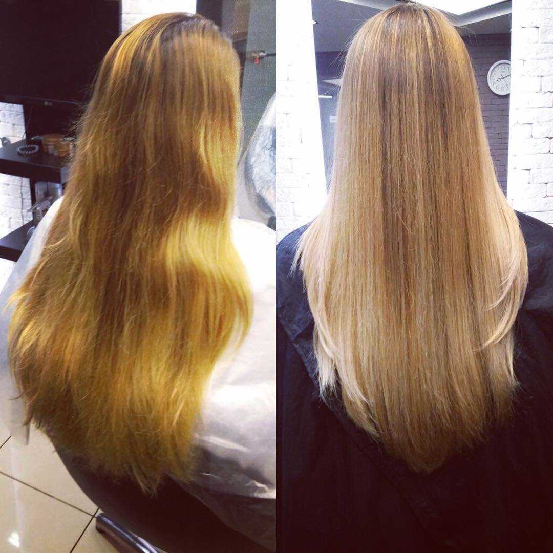 ), поскольку окраска из теплого темного в теплый светлый пройдет с наименьшей потерей для волос. Вы можете сделать смывку (но это очень травматичная для волос процедура), затем осветлить волосы и эту базу красить в нужный оттенок. Осветленные волосы становятся пористыми и впитывают не достаточно пигмента. При частом мытье головы цвет будет вымываться и придется часто краситься. Другой вариант — покрасить волосы в один тон с помощью оттеночного шампуня. А возможно, вы просто не пользуйтесь профессиональным шампунем для светлых волос, и рыжина проявляется быстрее. В любом случае, цвет волос на вашей фотографии мне кажется удачным. И я бы не стала портить волосы работой над ошибками и частыми окрашиваниями.