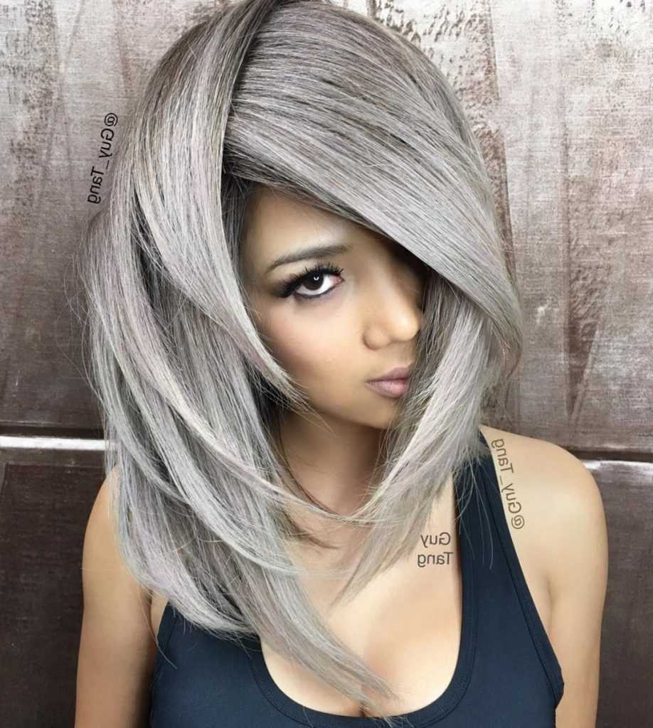 Этот холодный стальной оттенок имеет серебряный отлив, без золотых вкраплений. Популярен среди девушек благодаря шикарной окраске, красивой и выглядящей дорого, презентабельно. Будет хорошо смотреться в сочетании, как со смуглой, так и белоснежной кожей. Длина шевелюры не имеет значения, так как такой яркий акцент внешности отлично впишется в любую прическу и стрижку.