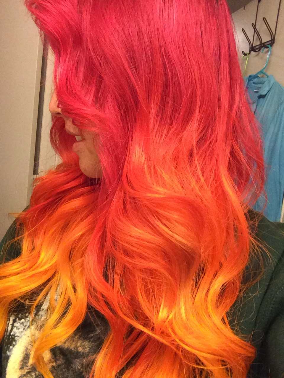 Некоторые колористы с успехом используют пищевые красители, на свело-русых волосах они дают очень интересный эффект. Возможно использование 1 тона или сразу нескольких. Переходы цвета могут быть плавными или четкими, в виде ровных полос.