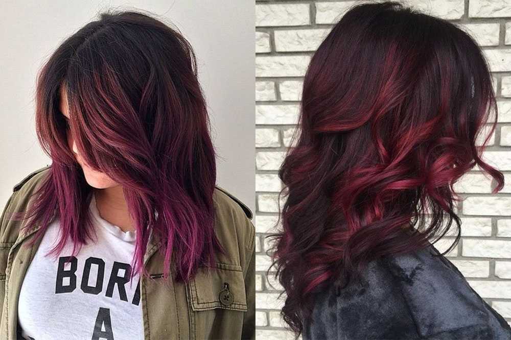 Монохромные черные прически уходят в прошлое. Оставаясь верной одному тону, модница рискует выглядеть чересчур архаично. Избежать ретроэффекта поможет использование различных техник мелирования. Шатуш, балаяж, омбре на черные и каштановые волосы легко можно сделать и в любой момент вернуться к исходной цветовой гамме. Если хочется яркости, можно воспроизвести оттенок в фиолетовой, лавандовой гамме, невесомой вуалью покрывающей основную массу прядей.