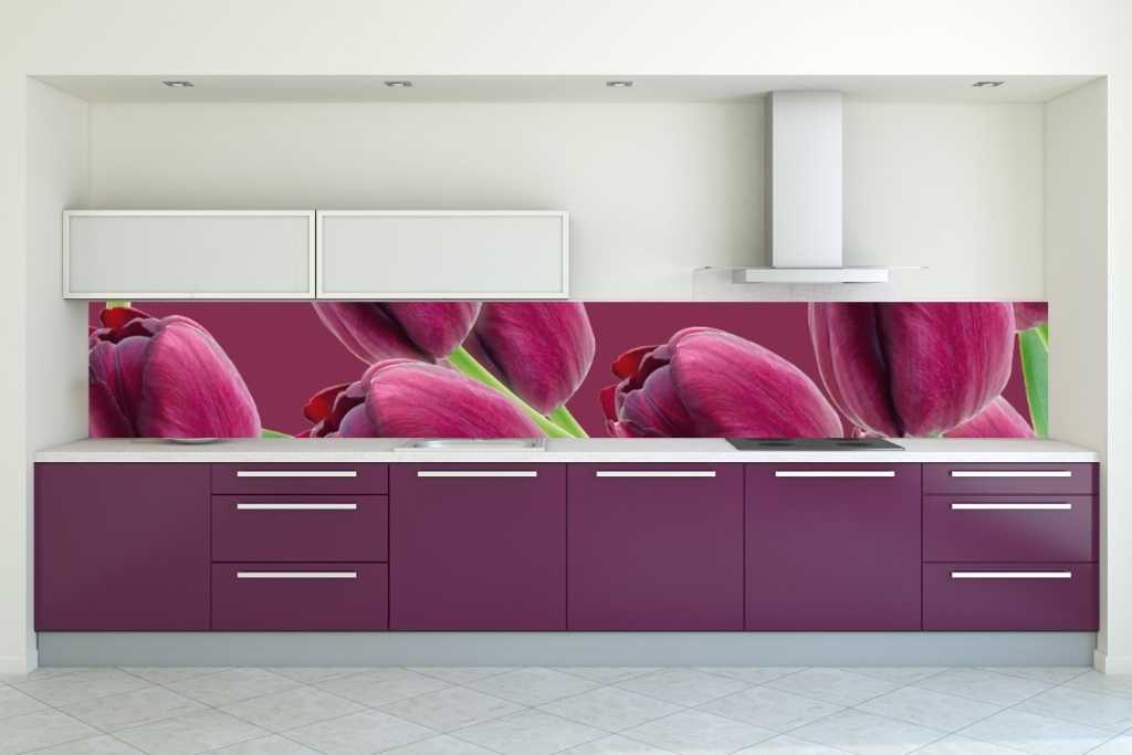 Для фартука в рабочей зоне выбирают, как правило, скинали. Такое оформление способно преобразить кухню своей яркостью и натуралистичностью. Так, фиолетовые цветы на белом фоне – отличный вариант для обыгрывания фартука. Можно выполнить фартук для кухни баклажан из плитки. В этом случае лучше выбирать контрастный цвет, к примеру, желтый с оливковыми вкраплениями.