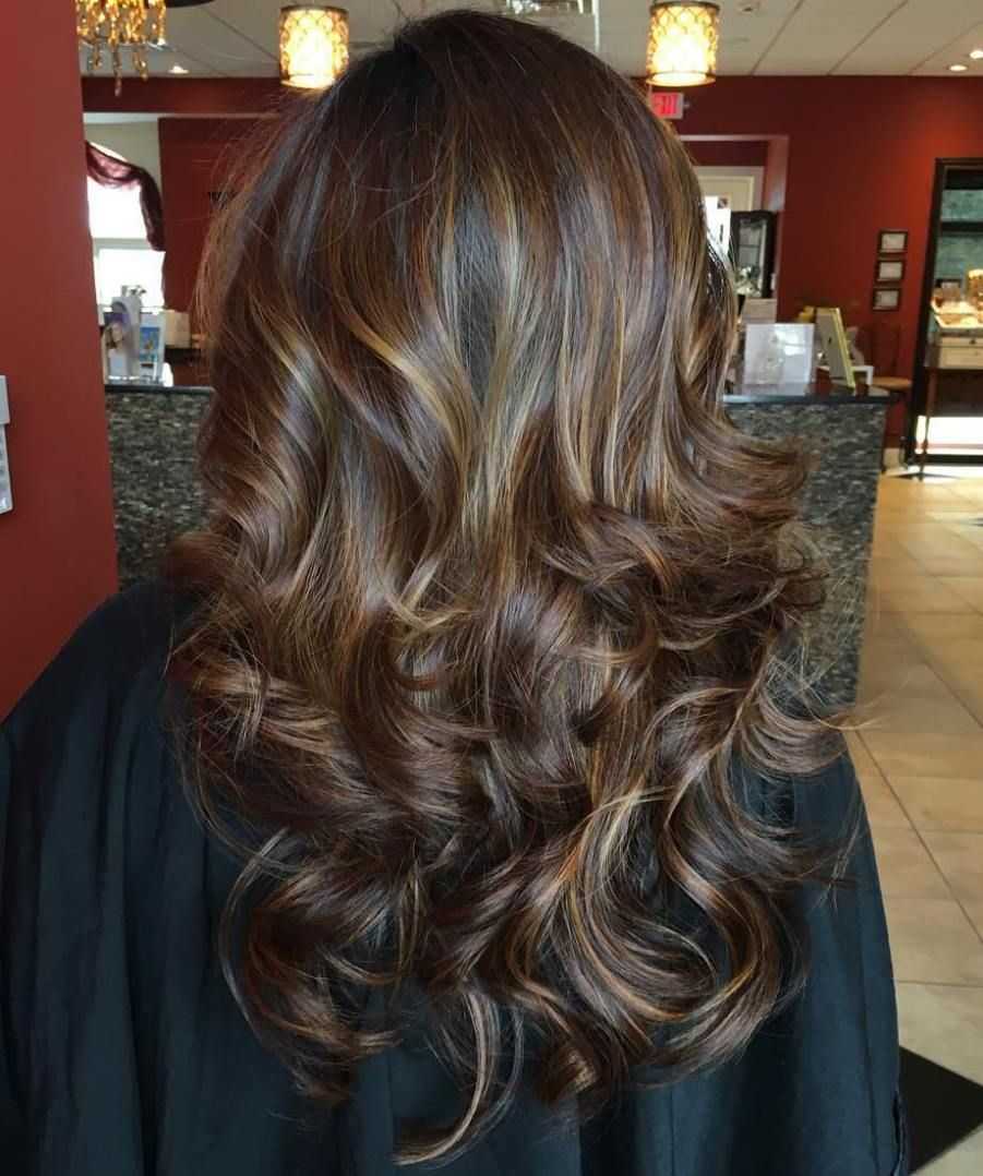 Как правило, данную технику применяют на темно-русых волосах, добавляя в копну волос янтарные или коньячные прядки. Иногда данный тип мелирования называют также янтарным. Чтобы понять, о чем идет речь, достаточно вспомнить образ знаменитой Дженнифер Лопес.