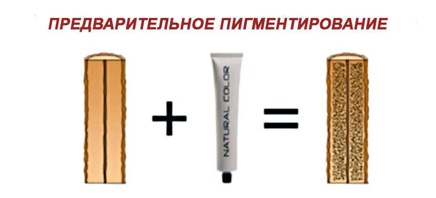 - Предпигментация – процесс заполнения кератиновых пустот красителем для их последующего взаимодействия с основным цветом. Для этого вида требуется семиперманентная краска. В любом случае должен быть выбран оттенок на тон светлее желаемого результата и основной краски.
