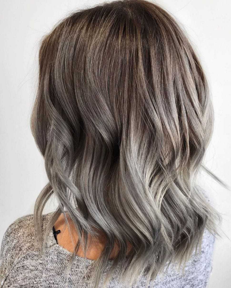 Балаяж. Трендом этого сезона является пепельное окрашивание, которое идеально подойдет для седовласых женщин. К тому же, благодаря резким или плавным переходам между оттенками, волосы становятся зрительно пышнее.