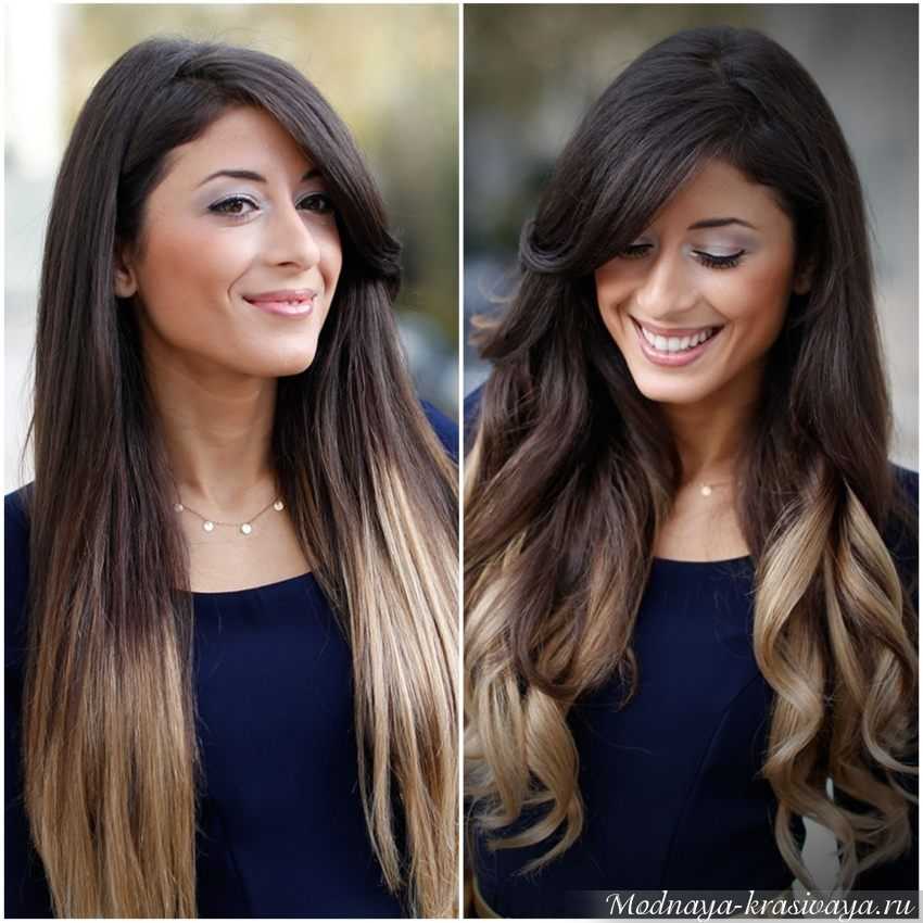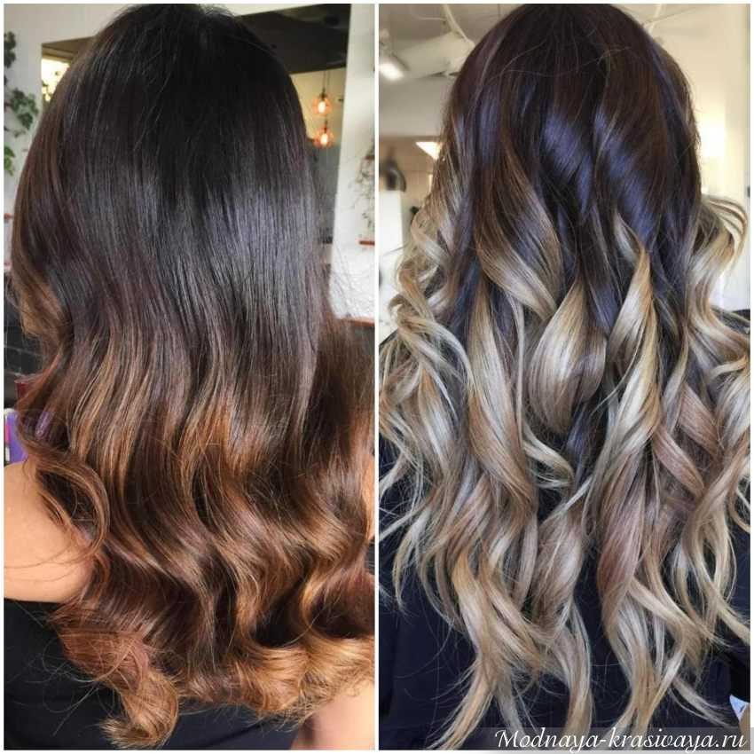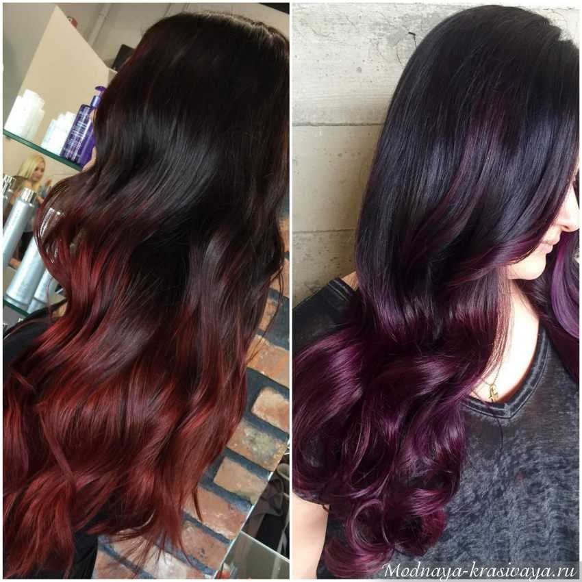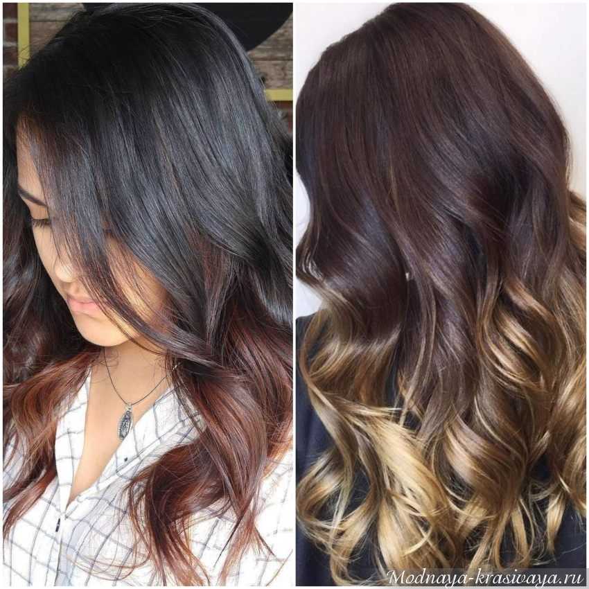Об омбре на темных волосах следует сказать отдельно. Так как изначально эта техника применялась именно на них. С ходом времени парикмахеры продолжали свои эксперименты, не останавливаясь на достигнутом. На сегодняшний день вариантов игры цветов в темных волосах безграничное количество. Все зависит от стиля и персональных предпочтений. Плавные и резкие контрасты или фееричные тональности, все чаще предпочитают выбирать обладательницы темных локонов.
