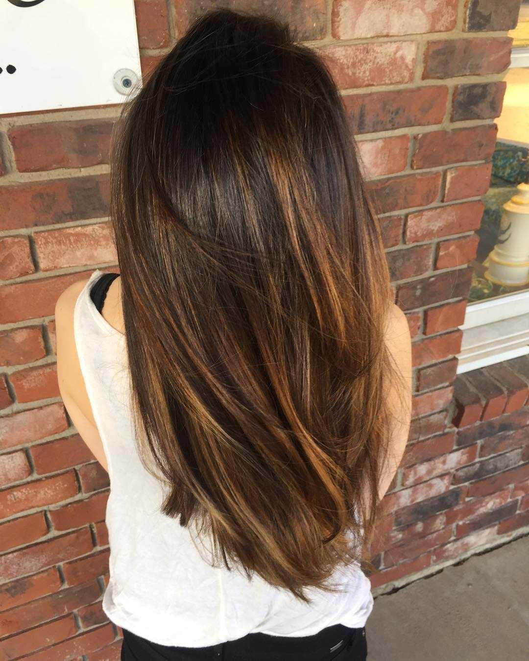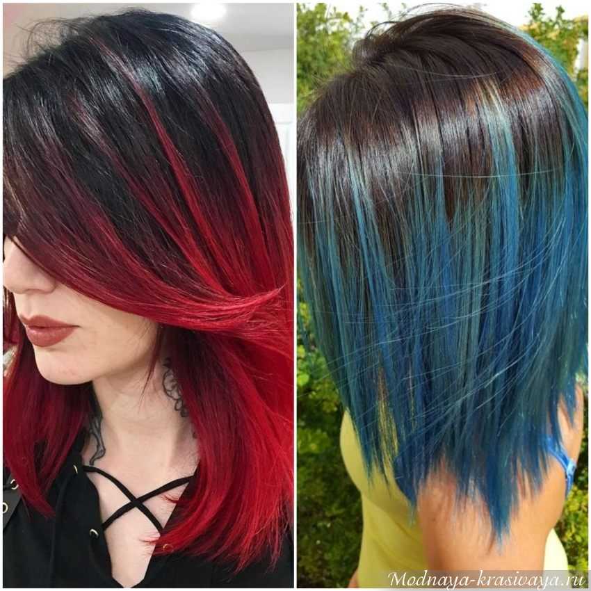 Черноволосым и темноволосым красавицам можно всё! Красные, зеленые, синие и выбеленные концы волос воплощают в себе бунтарский и дерзкий дух. Цветные пряди сразу выделят владелицу шевелюры из толпы, что вызовет всплеск стихийных стрит-фото. Хотите ли вы стать звездой инстаграма?! Если жажда популярности пока не проснулась в сердце, выбирайте более спокойные цвета. Шоколадные, коньячные, карамельные оттенки обогатят образ, сделают прическу роскошной и элегантной.