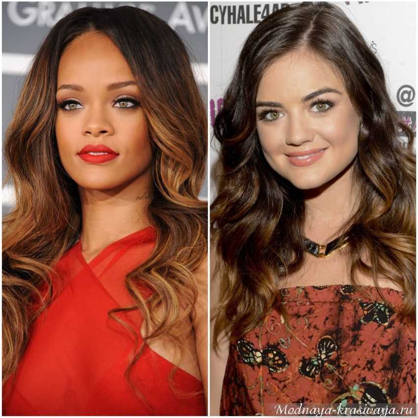 Русоволосым девушкам и женщинам также можно выбирать и воплощать на голове разные фантазии в стиле омбре. Все зависит от предпочтений – одним нравится естественность, мягкая женственность. В этом случае, лучше выбирать гамму в соответствии с цветотипом: холодным Лету и Осени к лицу будут горький шоколад, кофе с молоком, кофейный ирис и другие вкусные оттенки. Теплым Осенним и Весенним красавицам – все краски лета (как ни парадоксально!) – медовые, пшеничные, соломенные, а в качестве затемнения – орех или ольха.