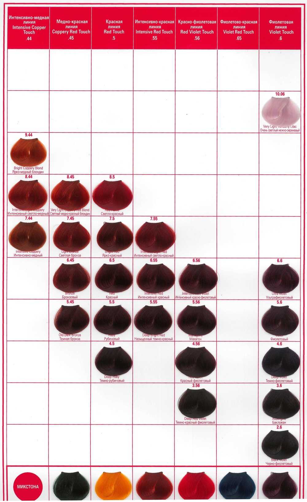 Цветовая палитра совпадает с цветами Profy Touch, что позволяет для выравнивания цвета чередовать химические красители с бальзамическими.