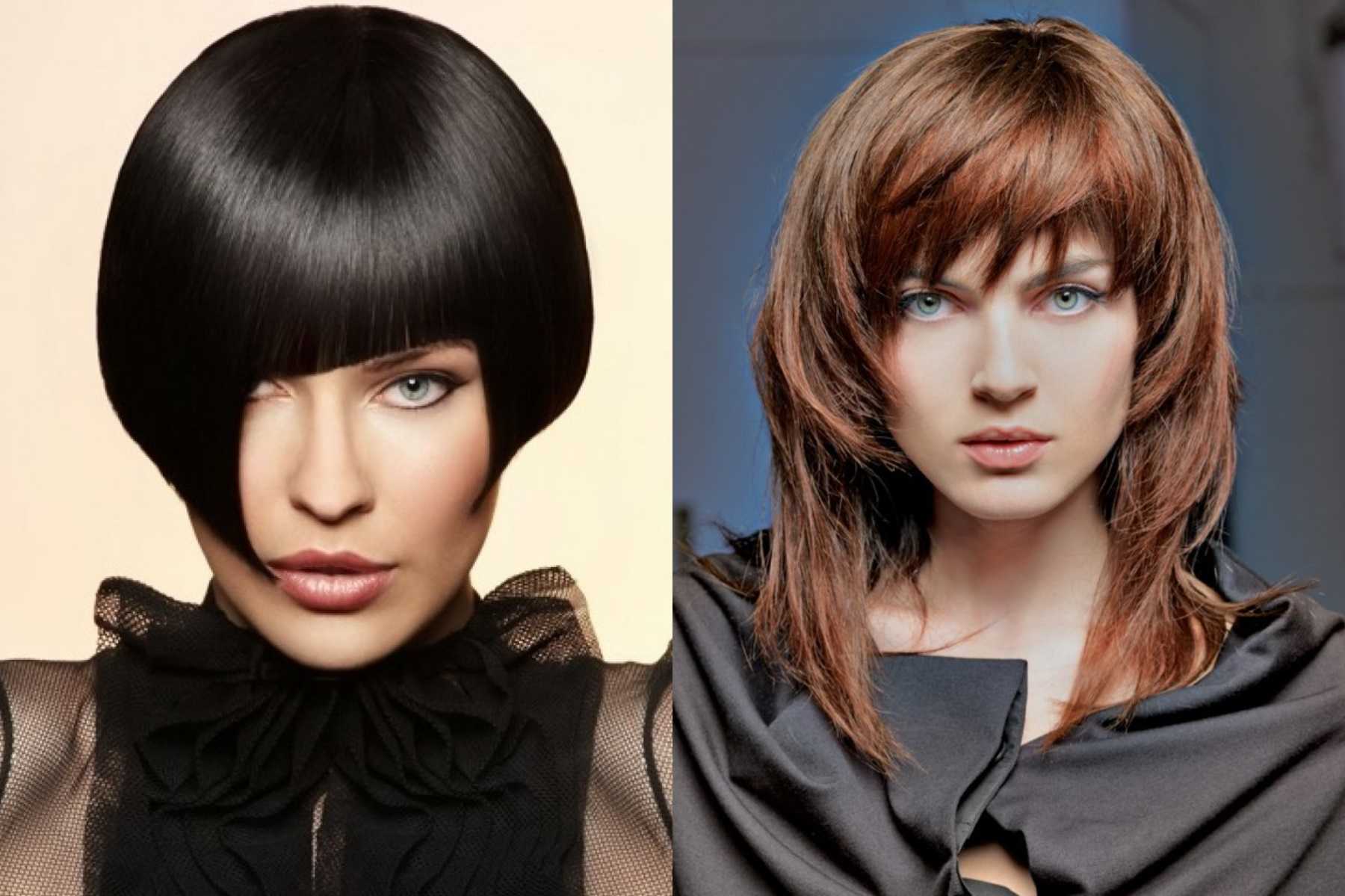 Подойдут: удлинённый боб, каре, интересные ассиметричные модели, каскадные вариации. Следует экспериментировать с чёлками – они могут быть как короткими, так и «миди» (до бровей), а также удлинёнными, зачёсанными набок, обрамляющими лицо, частично закрывающими глаза.