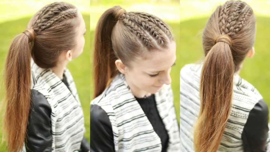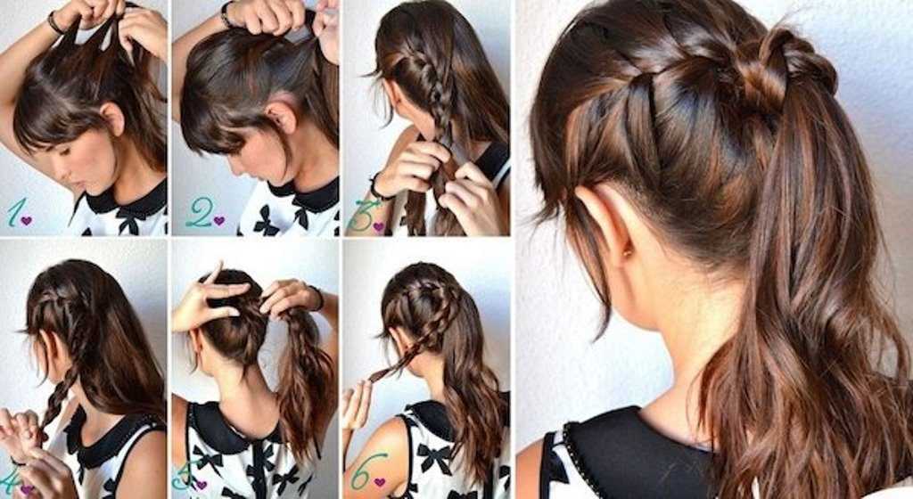 Если есть желание разнообразий образ с хвостом, то можно добавить в прическу косы. Такие причёски своими руками можно соорудить буквально за пятнадцать минут. Дополнить образ можно аксессуарами.
