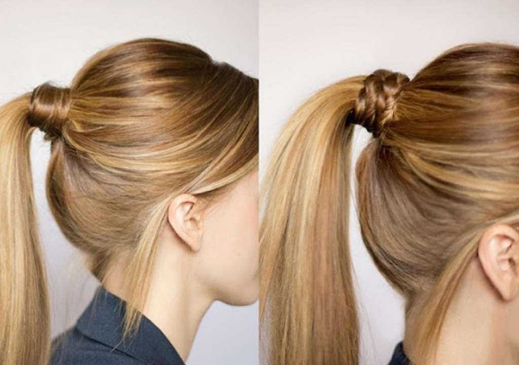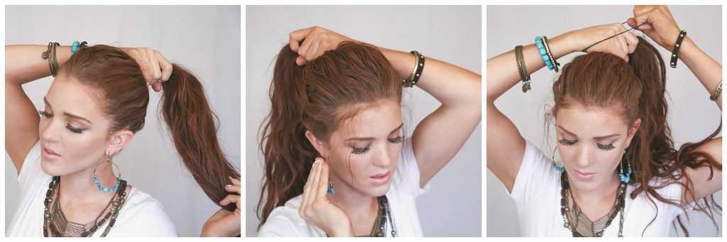 Совет. Чтобы образ был утонченным и привлекательным, верхнюю часть волос перед формированием хвоста нужно начесать.