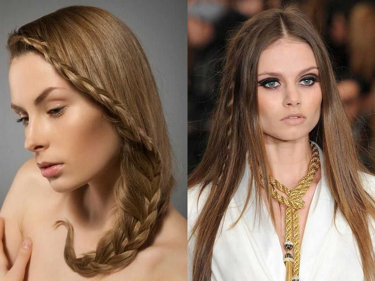 Всегда актуально плетение вдоль затылка. Это может быть встрепанный вариант для объема или гладкий для сложного декора. Модные макси-косы можно сделать, если слегка прижать пальцами и растащить в стороны «звенья».