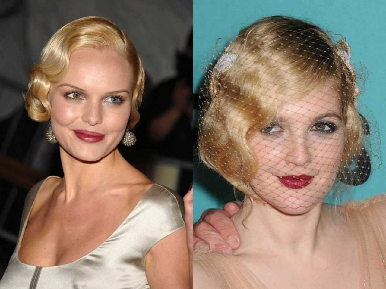 винтажный стиль остается модным уже не первый год, отмечается он и в числе моделей причесок, подходящих для торжественного случая и фотографирования на выпускной альбом; некоторые варианты причесок на средние волосы в стиле «Винтаж» представлены на фото ниже: