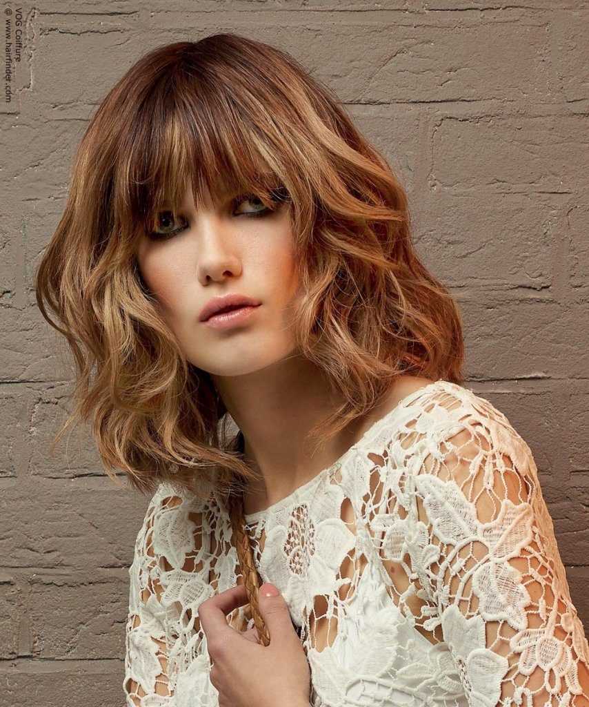 Вариантов каскада на средние волосы множество. Выбор зависит от овала лица, структуры и состояния волос. Самым актуальным вариантом для современных девушек считается каскад с прямой челкой. Такую стрижку могут позволить себе не все женщины, ведь она требует идеальное во всех отношениях лицо. Именно челка поможет скрыть или скорректировать недостатки лица и создать красивую прическу. Стрижка с прямой челкой прекрасно смотрится на обладательницах вытянутого лица. Густая прямая челка делает лицо визуально короче, скрывая морщины на лбу.
