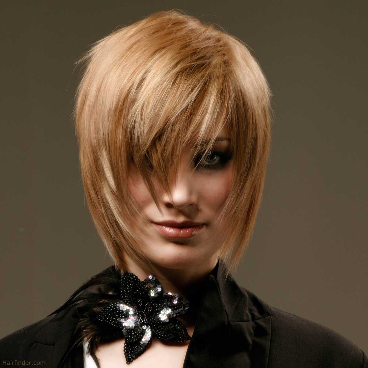 Оригинально и свежо выглядит каскад с косой челкой. При этом длина челки может варьироваться. Одни делают стрижки с челкой набок, другие оставляют длину до уровня скул. Наиболее броско выглядит стрижка с эктремально длинной челкой, буквально закрывающей все лицо. Часто такую длинную челку разделяют на две пряди и аккуратно укладывают на две стороны.