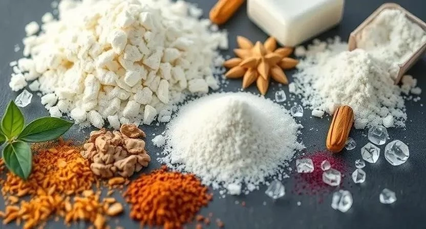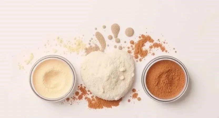 - Крахмал (кукурузный, рисовый, тапиоковый): абсорбирует излишки жира, придаёт объем.