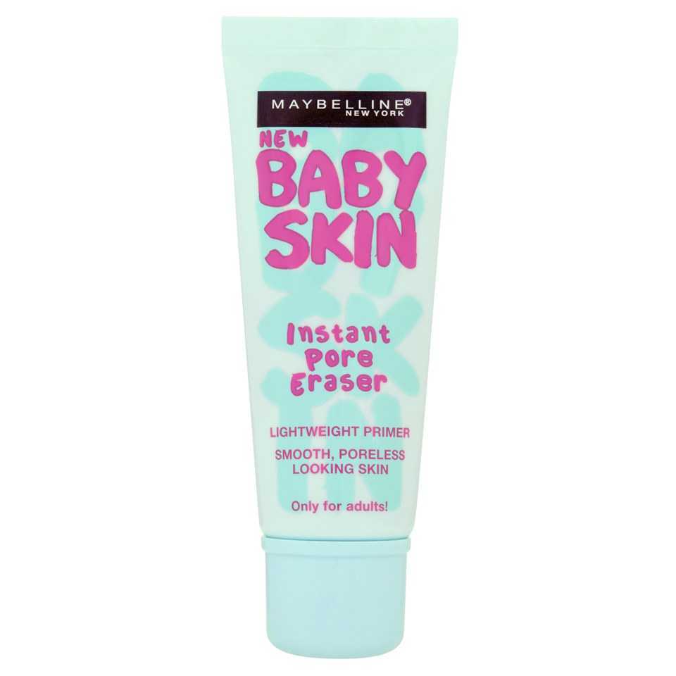 Почетное первое место занимает праймер от известного бренда Maybelline – Baby Skin. Он обладает легкой гелевой текстурой. Отлично справляется с выравниваем тона и рельефа кожи. Мягко скрывает недостатки дермы. Этот продукт универсальный, подходящий всем типам дермы. При этом следует учитывать, что обладательницам проблемной кожи с высыпаниями придется дополнить использовать зеленый праймер, чтобы замаскировать дефекты. При этом его цена вполне приемлема и доступна.