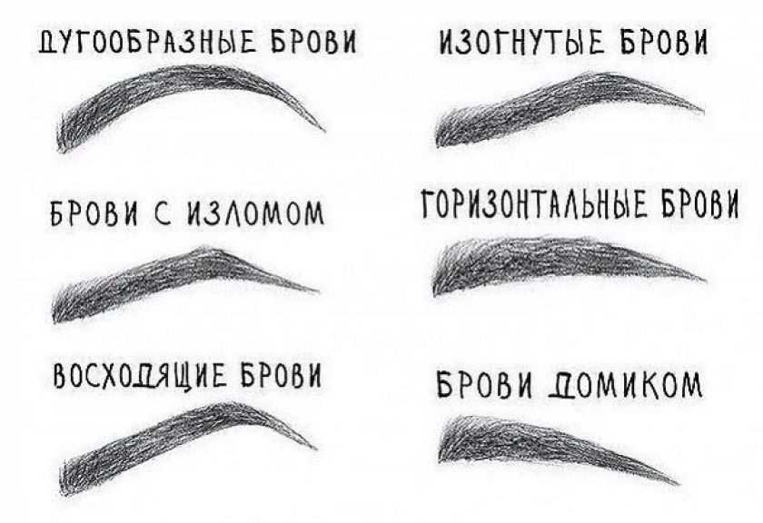 Брови различаются по густоте, положению оси, форме, взаимному расположению, высоте, длине, цвету и индивидуальным особенностям.
