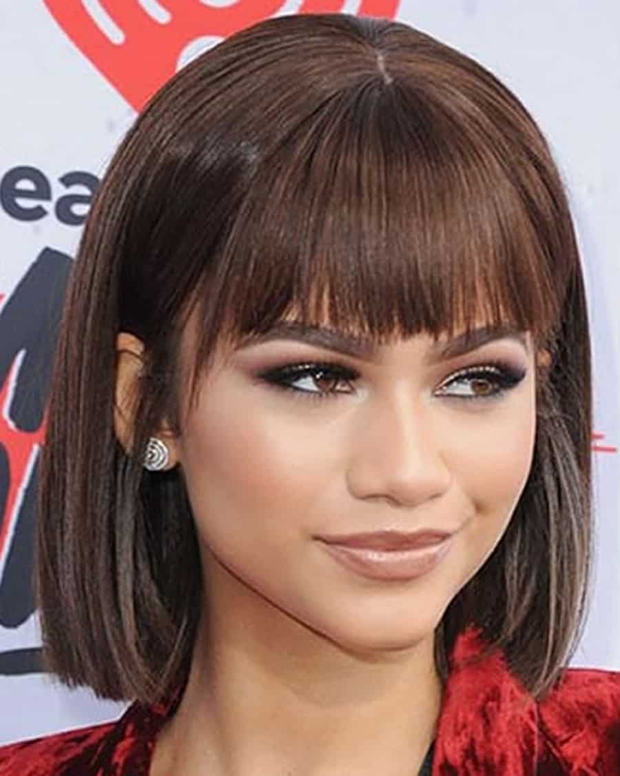 - Овальная форма – самая универсальная. Проблем с выбором стрижки не возникнет, овалу идет практически все! Если возникло желание визуально укоротить личико, стоит остановиться на прямой длинной челке, возможно, градуированной.