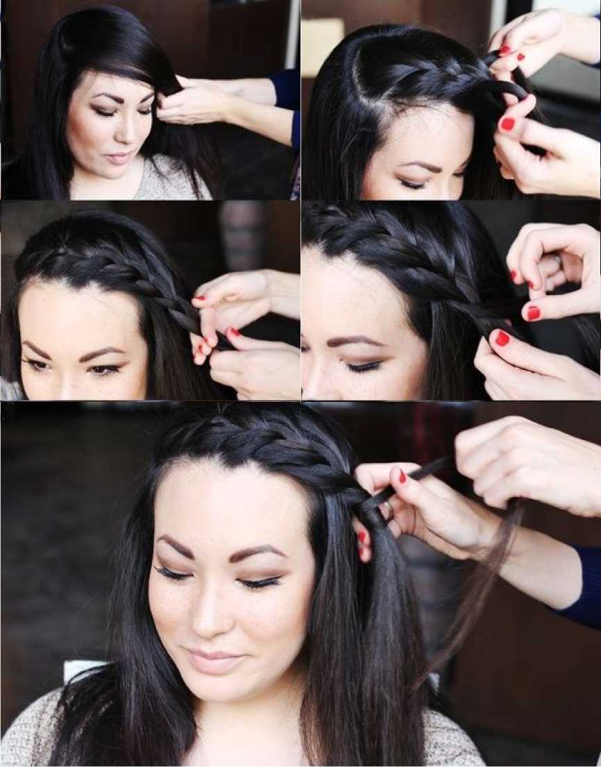 Стильная коса обрамляет лобовую часть головы и помогает убрать лишние локоны, которые немного мешают. Прическа делается довольно просто: