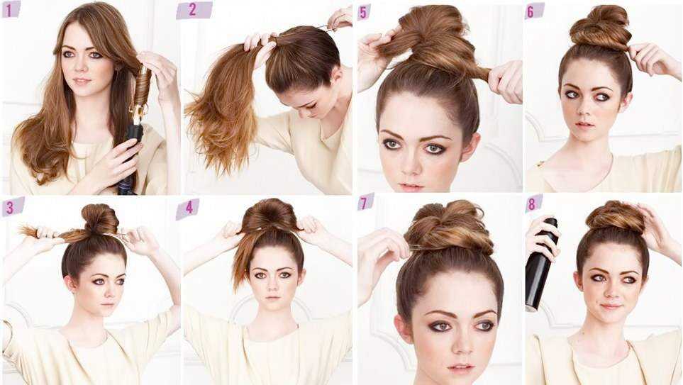 Техника укладки высокого пучка из длинных волос пошагово