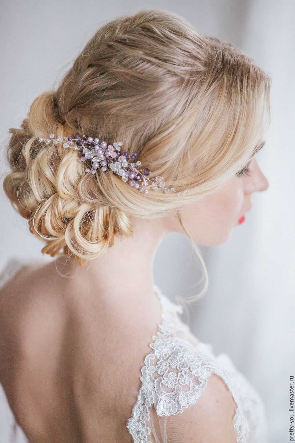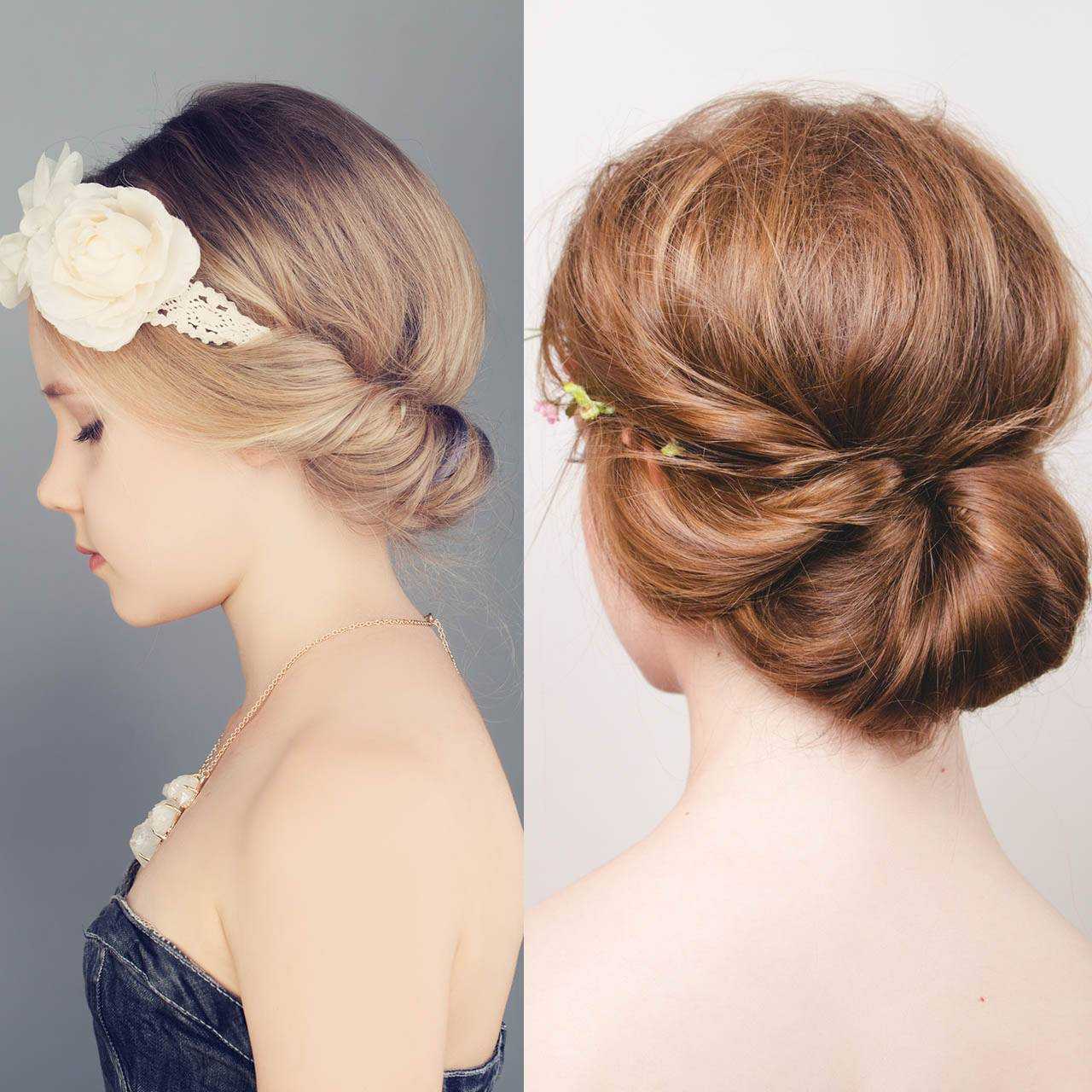 В распоряжении девушек множество заколок с камушками, бусинами, жемчужинами, цветными кристаллами. Присмотритесь к укладкам с репсовыми и атласными лентами в сдержанных оттенках: черном, белом, телесном, розовом. Красиво выглядят вечерние укладки с ободками, диадемами, цветочными украшениями. В фото-галерее в конце обзора вы найдете множество идей таких укладок.
