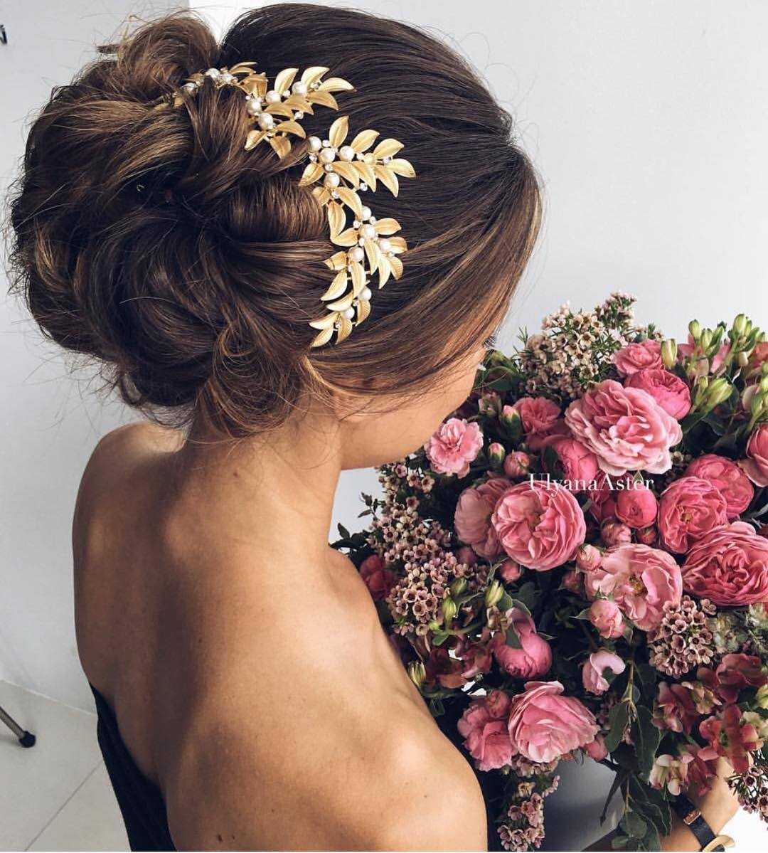 Стильный пучок отлично подходит как для вечеринки, так и для повседневного образа. Праздничный вариант может быть выполнен с большим объемом. Для достижения этой цели воспользуйтесь специальным «бубликом» и слегка начешите волосы у корней. Кроме того, к прическе стоит добавить необычный декор или плетение.