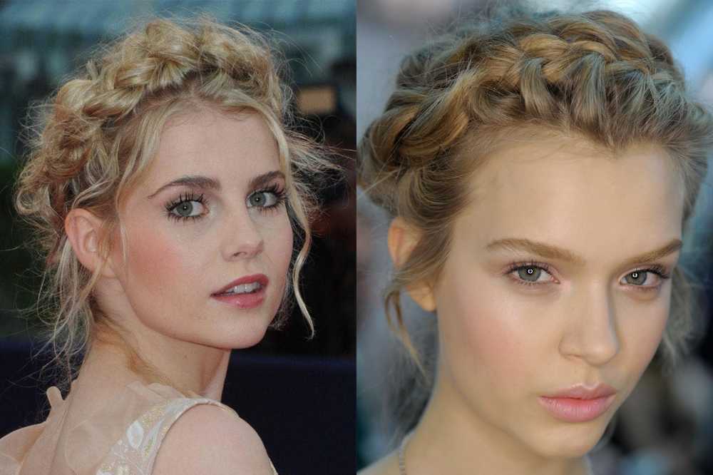 Эта прическа набирает все большую популярность. С помощью изящного плетения создается оригинальная корона, которая очень необычно собирает волосы.