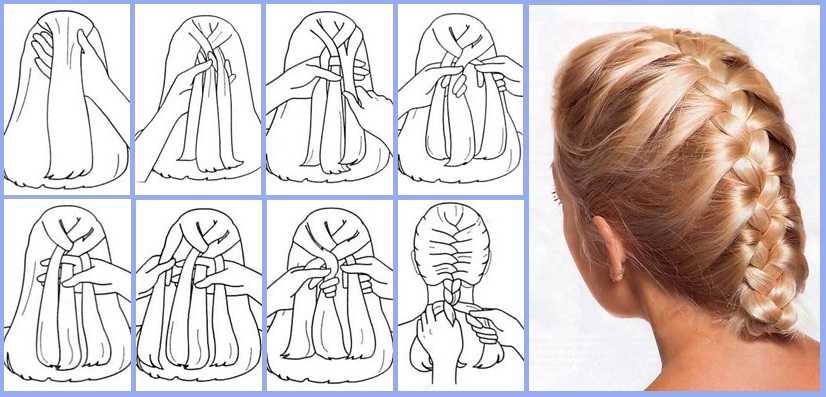 Плетение косы из четырех прядей подходит к любому цвету волос