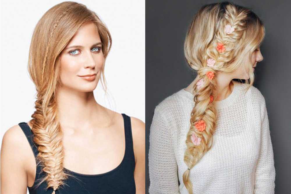 Сделайте классический рыбий хвост: поделите волосы надвое, и заплетите их, поочередно направляя в середину тонкие прядки.