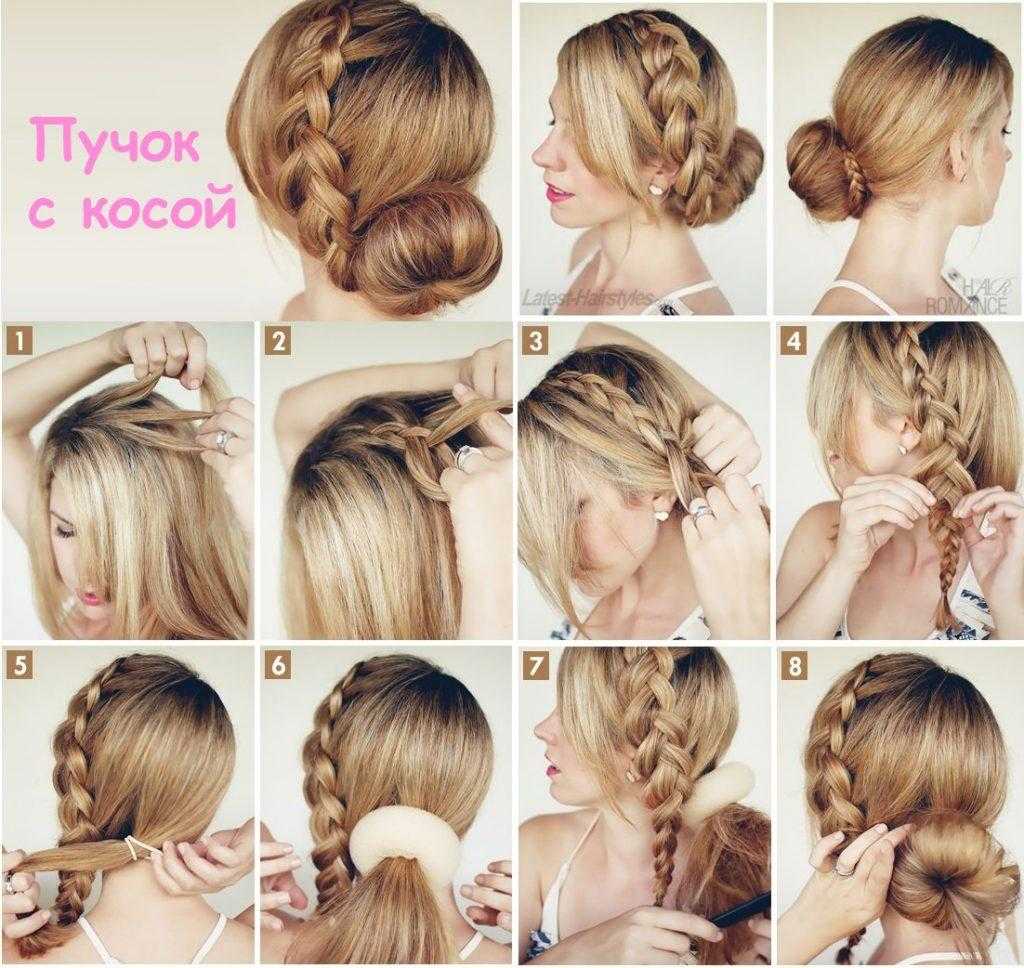 Особенно выигрышно смотрится прическа с пучком из бублика. Поэтапное выполнение в мастер-классе с фото: