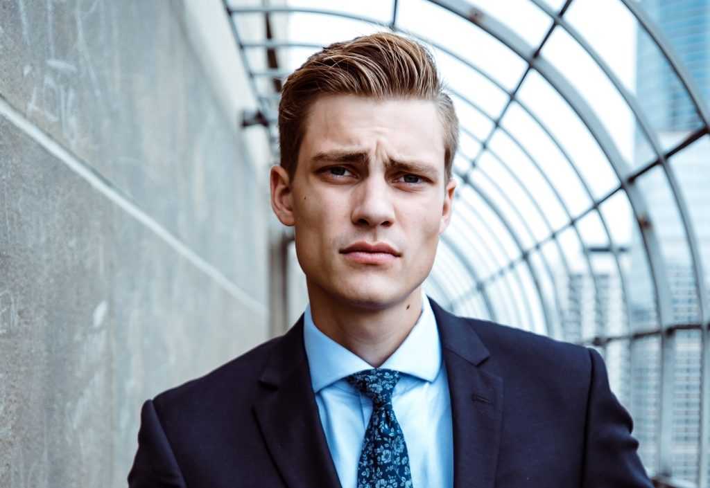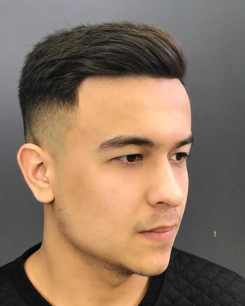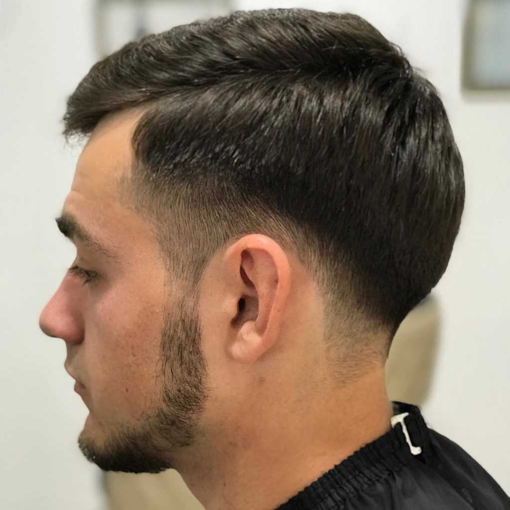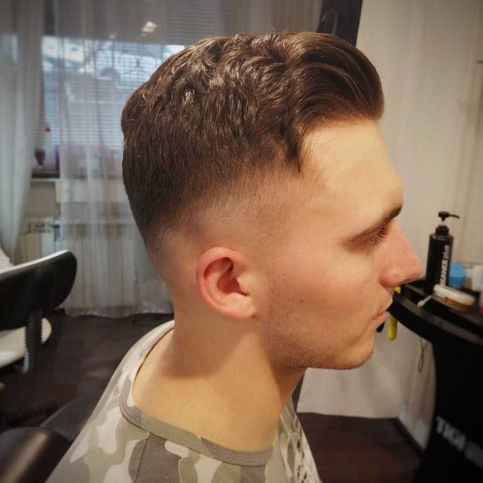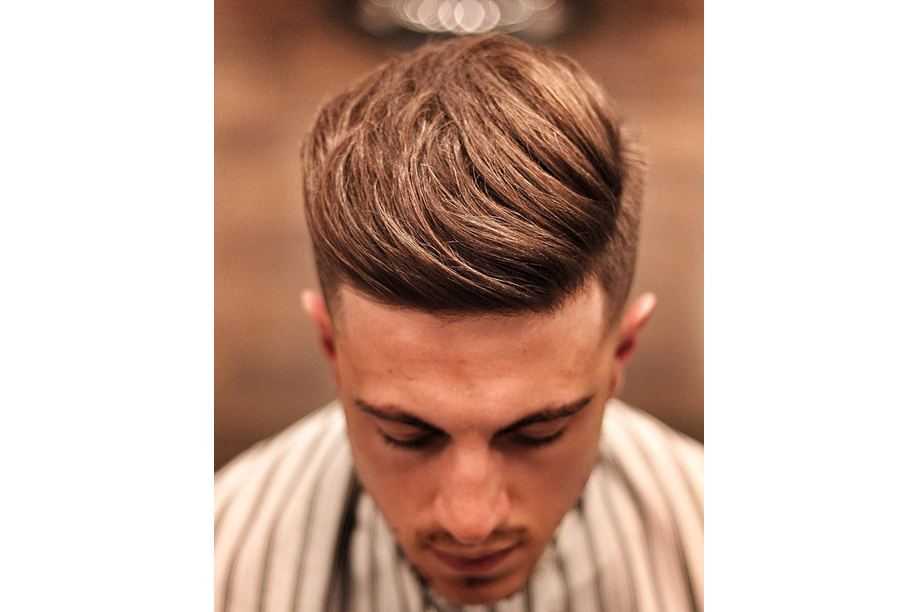 Спокойная и строгая стрижка подходит серьезным молодым людям и требует объемной волны надо лбом. Обычно удлиненные пряди на теменной зоне постепенно сходят на нет на висках и затылке. Однако стилисты находят более актуальным резкий переход от длины к выбритым бокам.