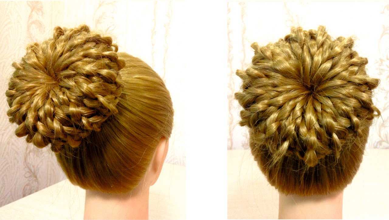 Далее из них также делают косы и укладывают вокруг основания в красивый пышный пучок.