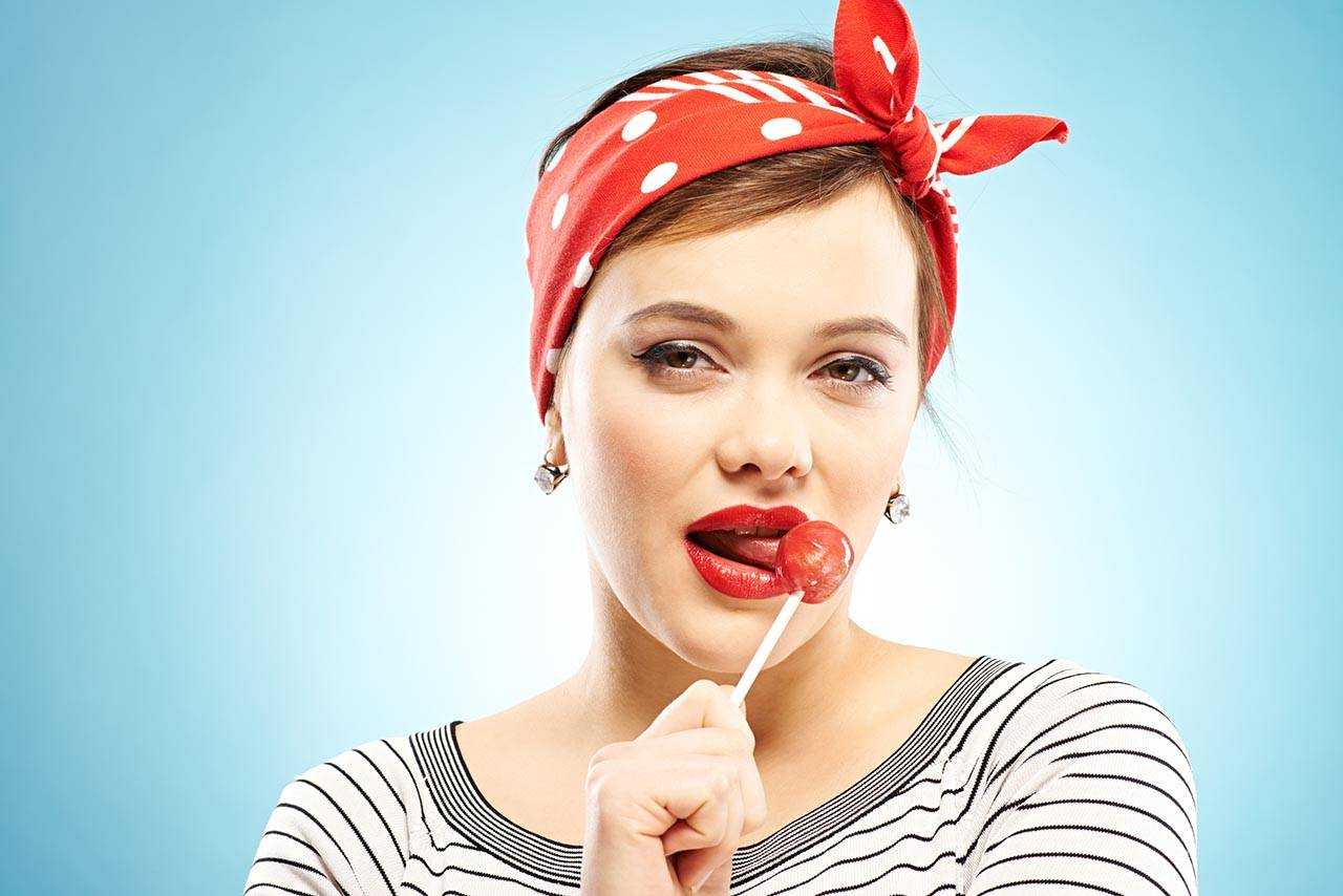 Но главное, что отличает причёски пин-ап, это яркие косыночки, шляпки, повязки и газовые шарфики, повязанные бантом или простым узлом. Для создания и закрепления причёски используются невидимки и шпильки, как обычно, но отделка причёски очень выразительна. При этом платки и шарфики обязательно вписываются в остальной наряд, в той же гамме цветов или, наоборот, создают броский контраст. Но уж с цветом губной помады они обязаны красиво сочетаться.