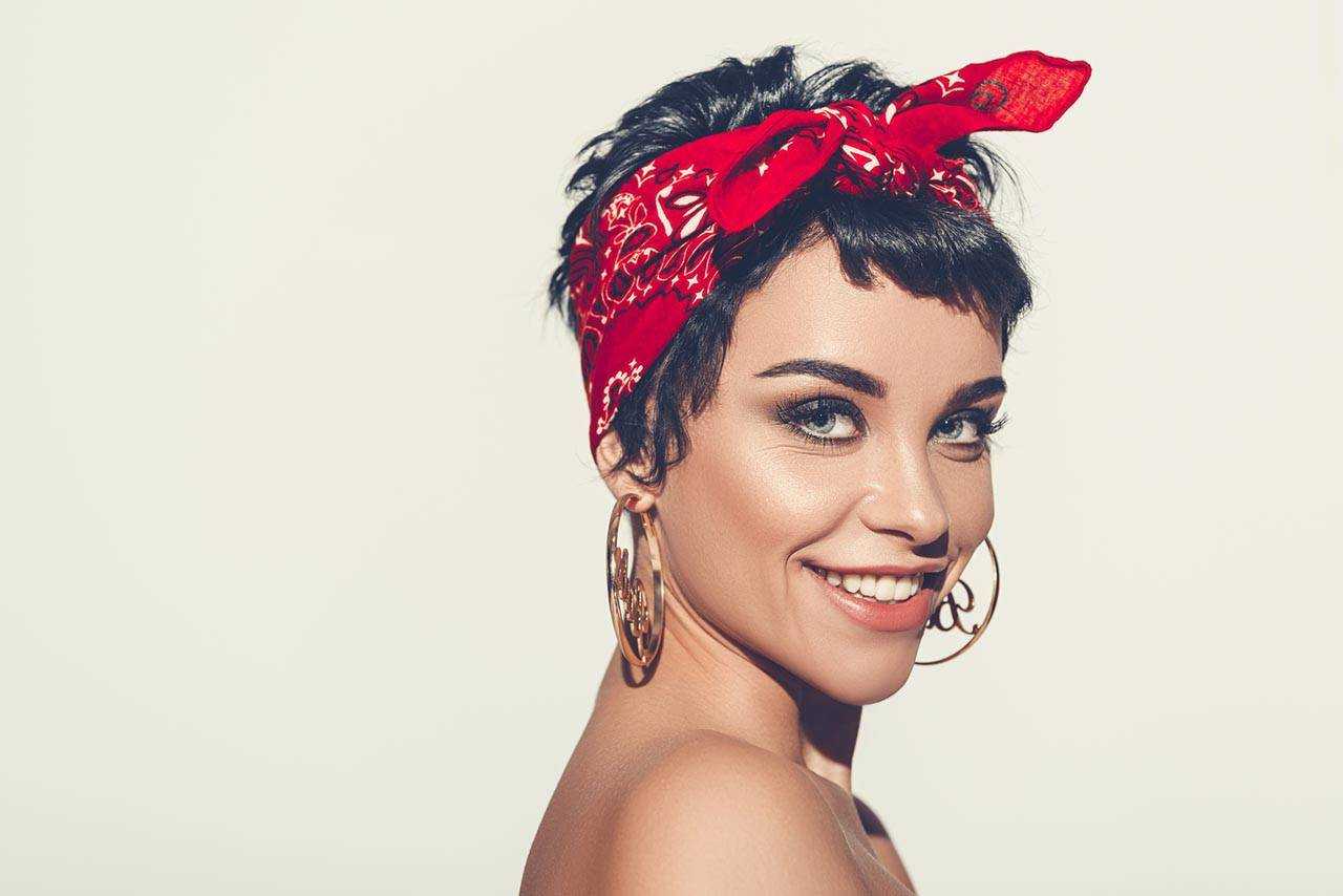 Если ваши волосы слишком короткие, практически под мальчика, создать богемную укладку можно, использовав широкую повязку. Кстати, ее роль может сыграть, скажем, винтажный шелковый платок. Просто сложите шарф по диагонали несколько раз, чтобы получилась тонкая полоска, и завяжите аккуратным узлом на затылке!