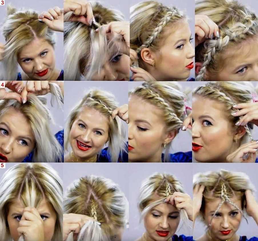 - Развести полученные косички в разные стороны и спрятать кончики под остальными волосами.