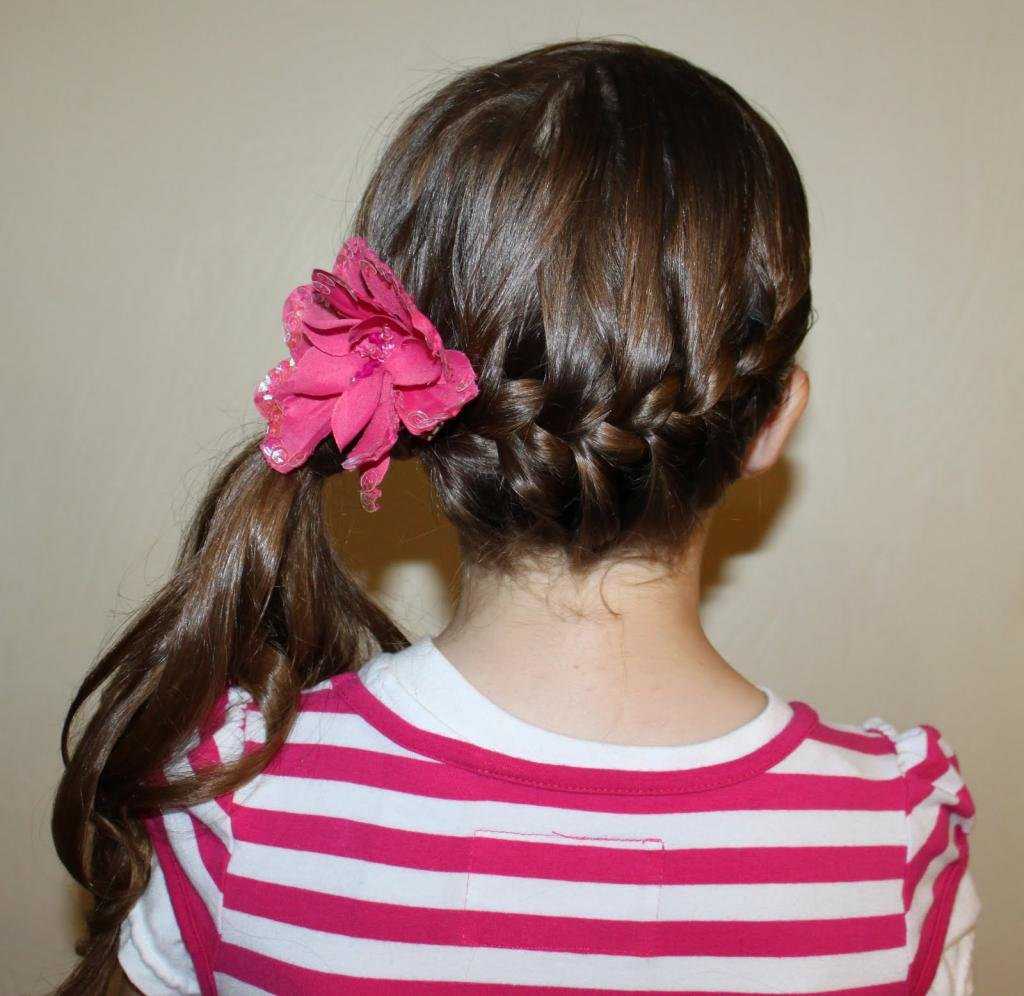 Для начала нужно собрать волосы в хвост, разделить их пополам, взять с двух сторон по одной пряди и переложите их в противоположную сторону. Проделать это до конца, а потом закрепить резинкой. Потом вытащите несколько локонов и аккуратно завейте их щипцами – это сделает образ интереснее. Несколько вытянутых локонов придадут вид легкой небрежности. Коса на бок колоском хорошо смотрится с вплетенными атласными лентами. Кончик можно распушить расческой, а всю прическу сбрызнуть лаком.