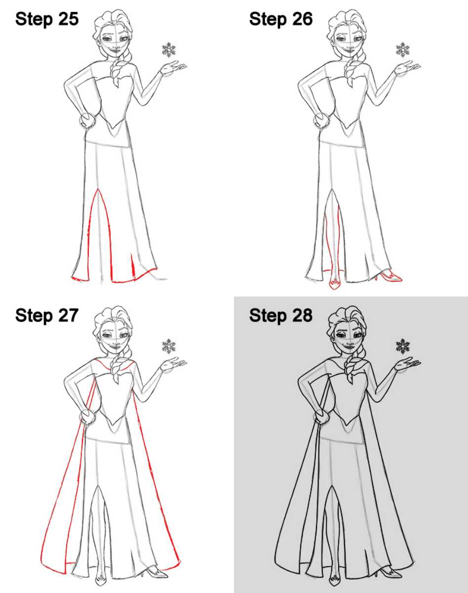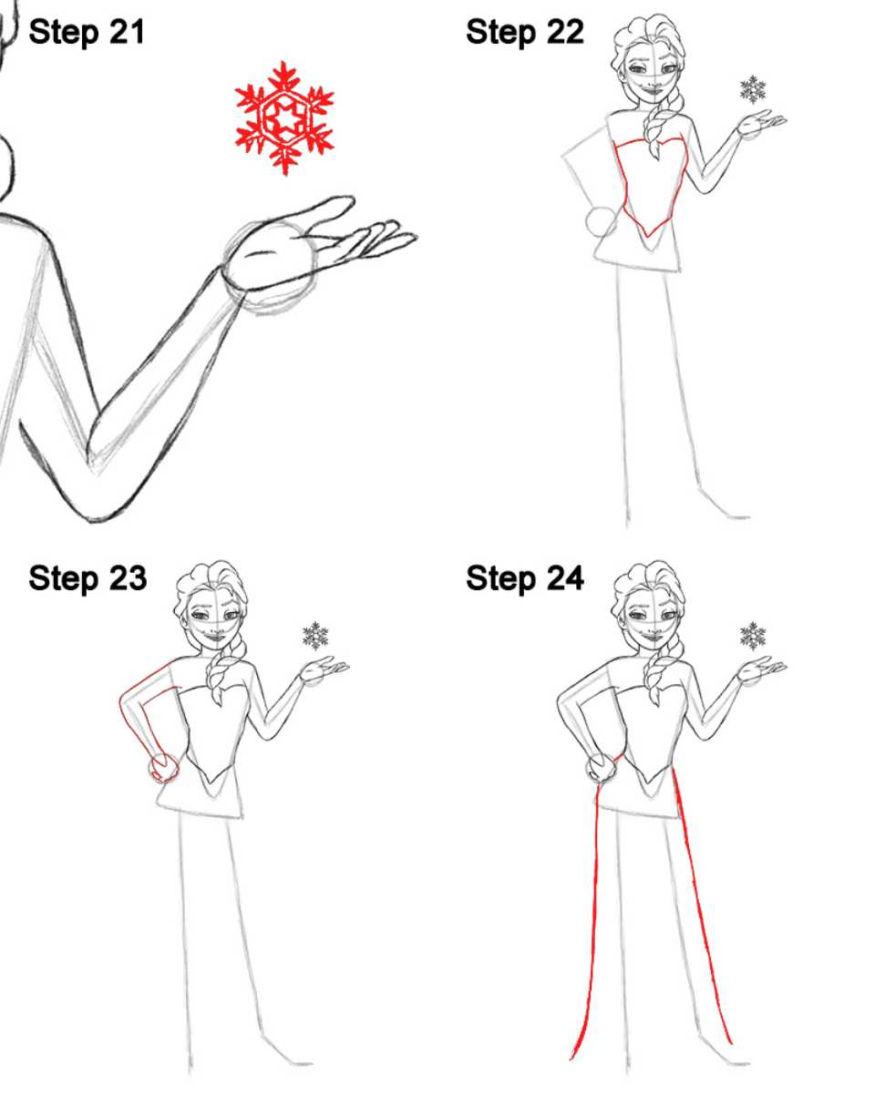 Пошаговые инструкции по рисованию Эльзы из Frozen