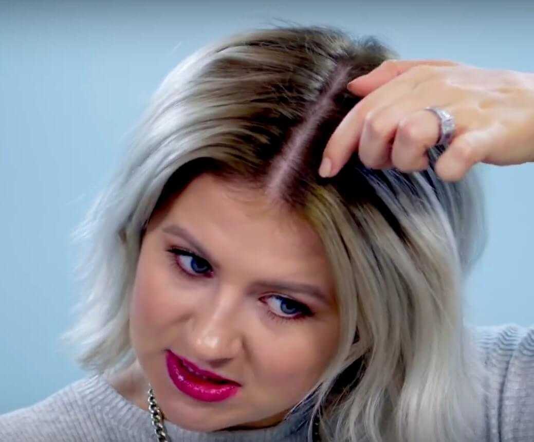 - Разделите волосы на две равные части вертикальным пробором.