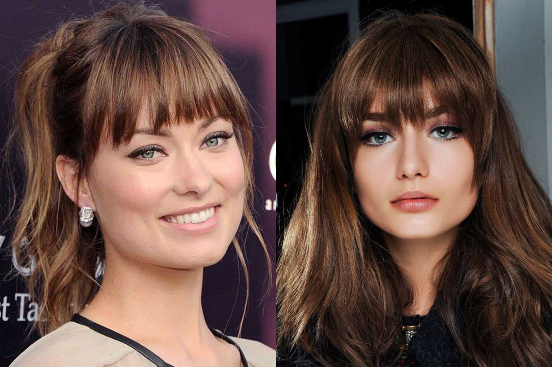 Густая челка – идеально смотрится на длинных волосах, как на распущенных, так и на собранных в пучок или гульку. Прекрасно подойдет для женщин за 30, особенно если они предпочитают носить достаточно строгие прически.