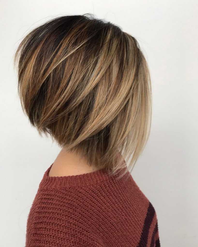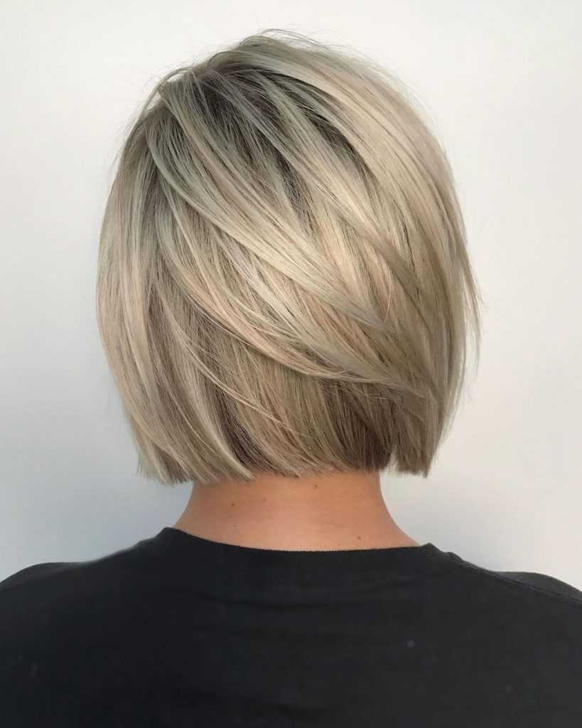 В отличие от традиционного каре, такая форма получается более каскадной за счет выбритого затылка. Передние локоны остаются относительно длинными и могут доходить до уровня подбородка.