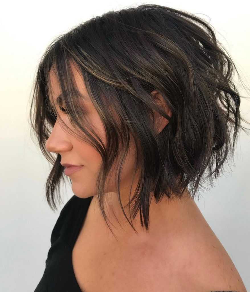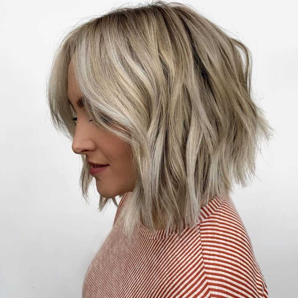 В этой прическе не соблюдаются никакие четкие линии, поэтому она выглядит, немного небрежной. Челка в таком случае в основном косая, доходящая до линии бровей. Сама же прическа заканчивается на уровне подбородка или немного выше.
