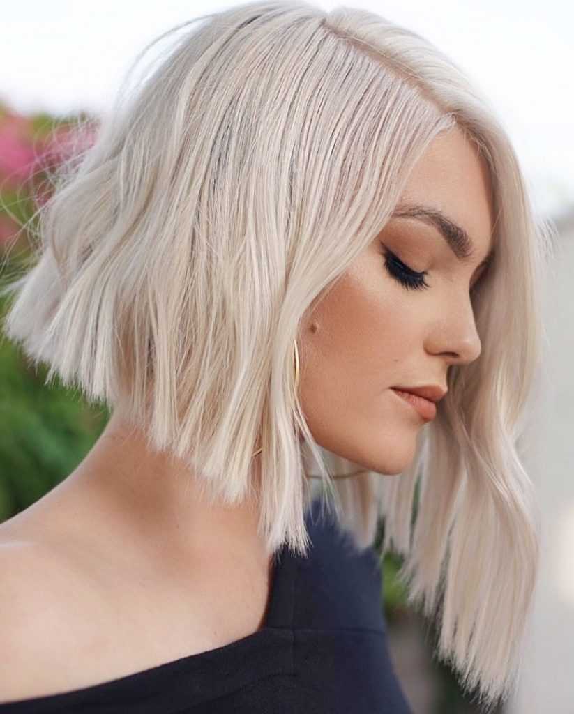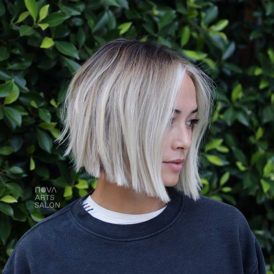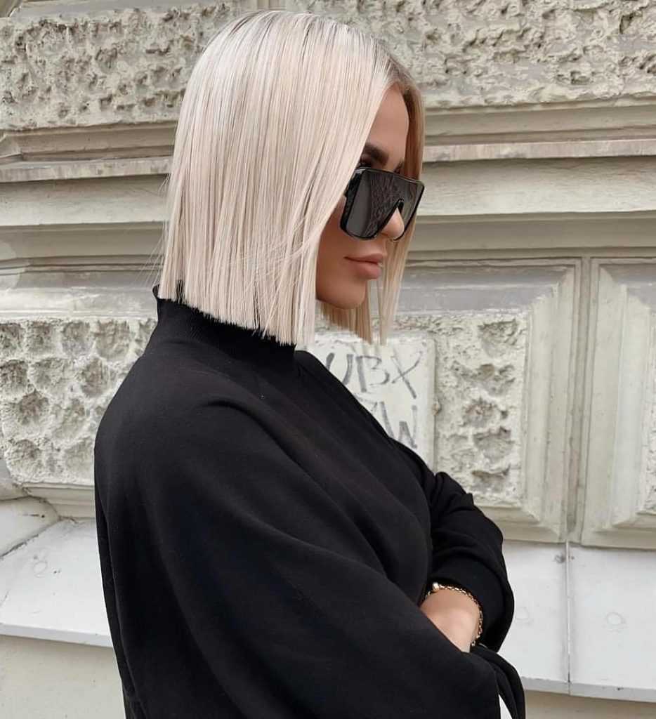 Хитом нового сезона стала классическая стрижка боб длиной с подбородок в гладком виде без выделенной челки. Подобная прическа действительно очень эффектная и элегантная. С боковым пробором модная стрижка боб 2020-2021 выглядит более романтично.