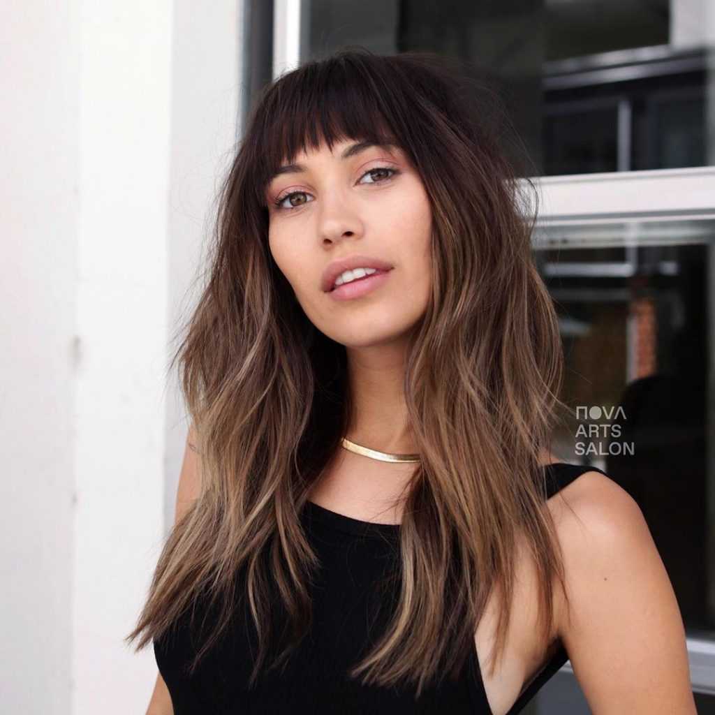 Игривые волнистые пряди и короткая рваная челка – сочетание, которое стало модным в длинных женских стрижках 2020-2021. Если раньше так называемые «пляжные» волны были актуальны больше для весенне-летнего сезона, то сегодня задорная прическа смотрится вполне удачно в осенне-зимних луках.