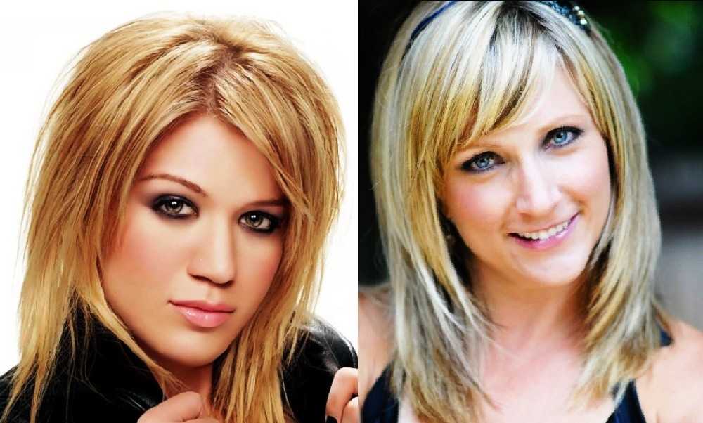 Разорвать линию круга можно с помощью такой популярной прически, как каскад — она идеальна для волос средней длины. При данном варианте чередуются более короткие макушечные локоны с более длинными. Достоинство каскадных вариаций в их универсальности, подойдет любой материал: густые волосы и не очень, тонкие, прямые и вьющиеся. Обновить имидж можно, не меняя стрижку, достаточно поэкспериментировать с сочетанием оттенков при покраске.
