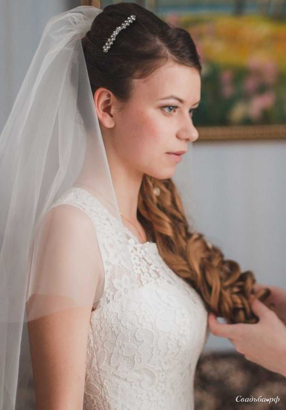 Если же вы выбрали кудряшки, то небрежные локоны могут добавить вашему образу легкости и воздушности. Такую прическу можно сделать своими руками, небрежно собрав волосы на макушке с использованием качественного лака для волос.Совет: если вы решили сделать высокую прическу, то фату лучше всего приколоть невидимками под пучком. Таким образом вы продемонстрируете красоту вашей прически, а фата будет хорошо закреплена.